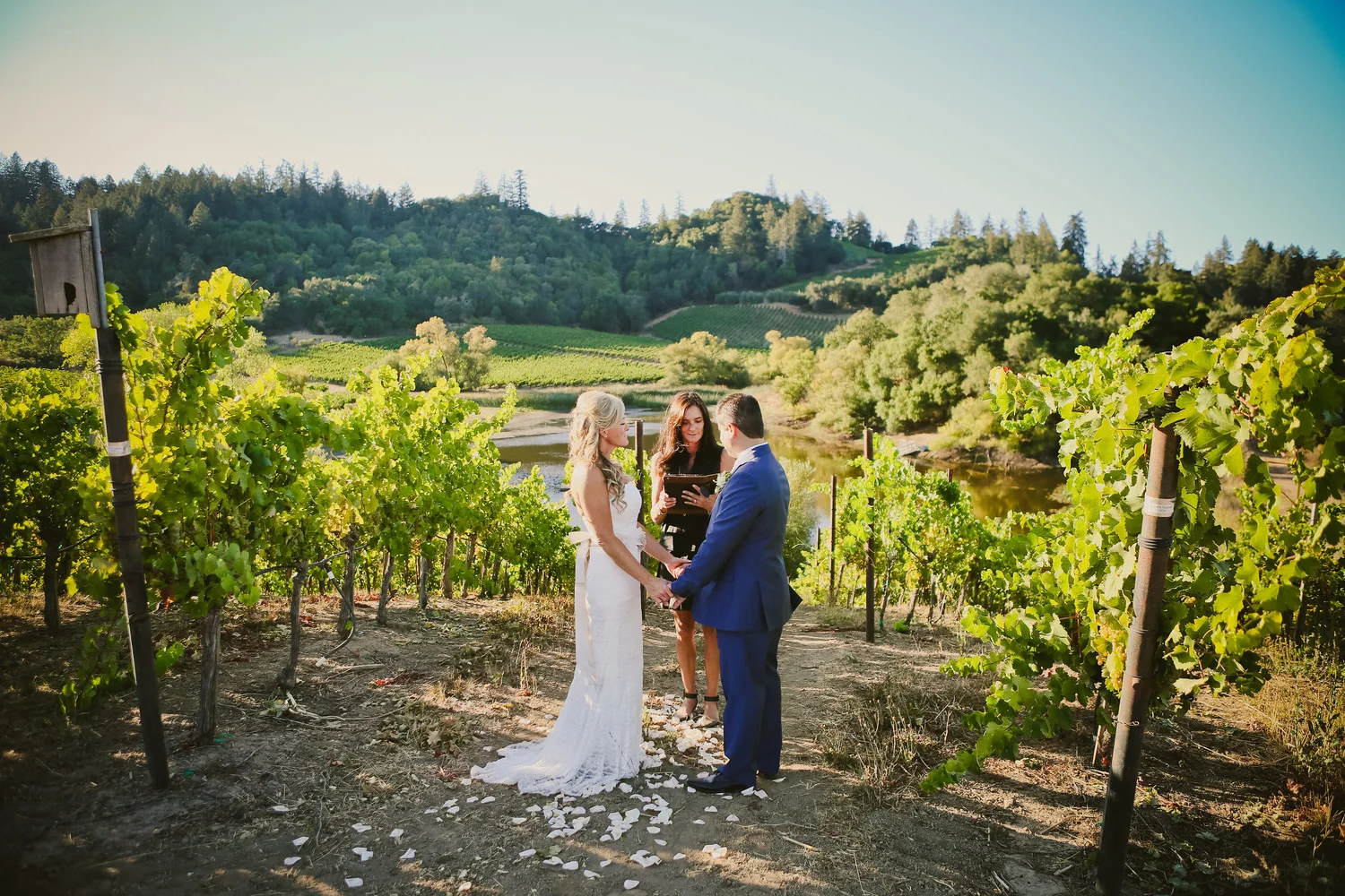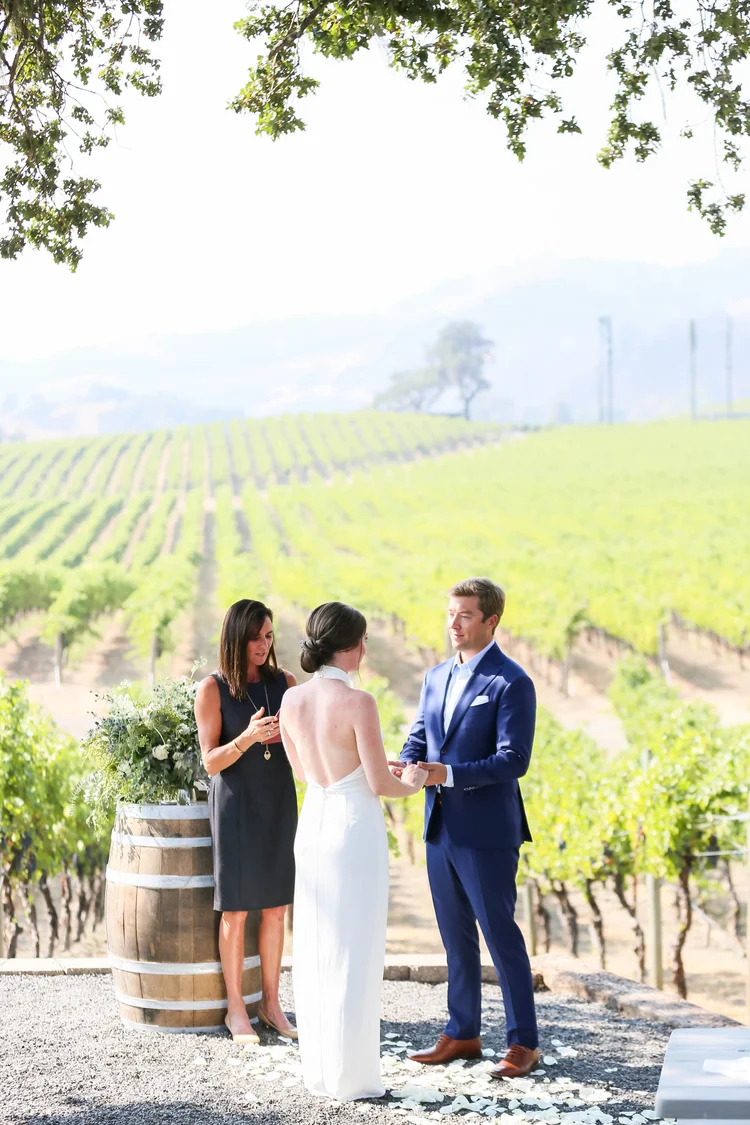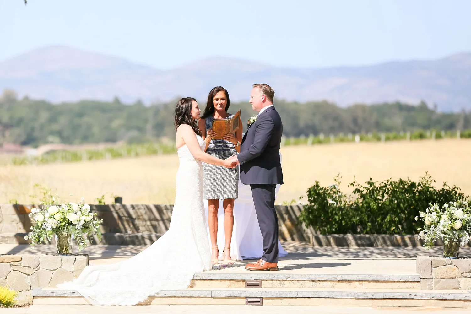 “Stevi was recommended to us by the event coordinator at our wedding site and she was fantastic! She met with us before the big day to go over ideas for our ceremony, made suggestions and supplied examples of all kinds of ceremony elements. She helped us create a perfect ceremony for our small, intimate wedding and to reflect our personalities. She was responsive, easy to work with and so, so kind. I would highly recommend her to anyone, whether getting married in the California wine country or elsewhere. We couldn’t be happier with our choice in officiants! ”